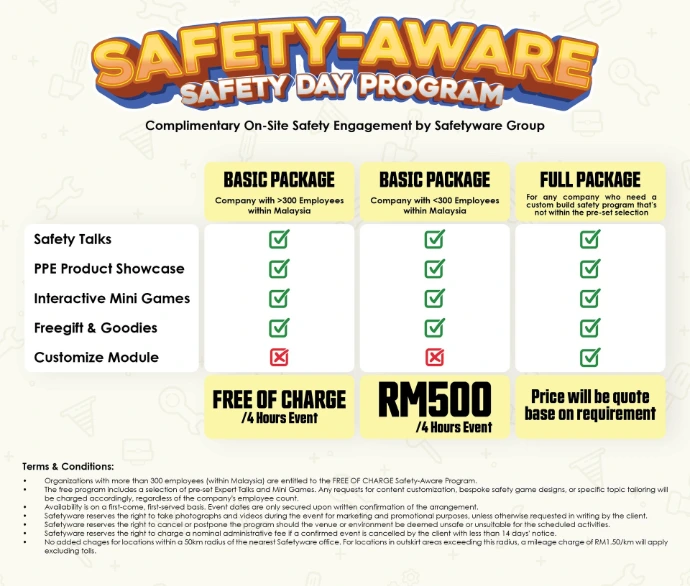 - Organizations with more than 300 employees (within Malaysia) are entitled to the FREE OF CHARGE Safety-Aware Program.